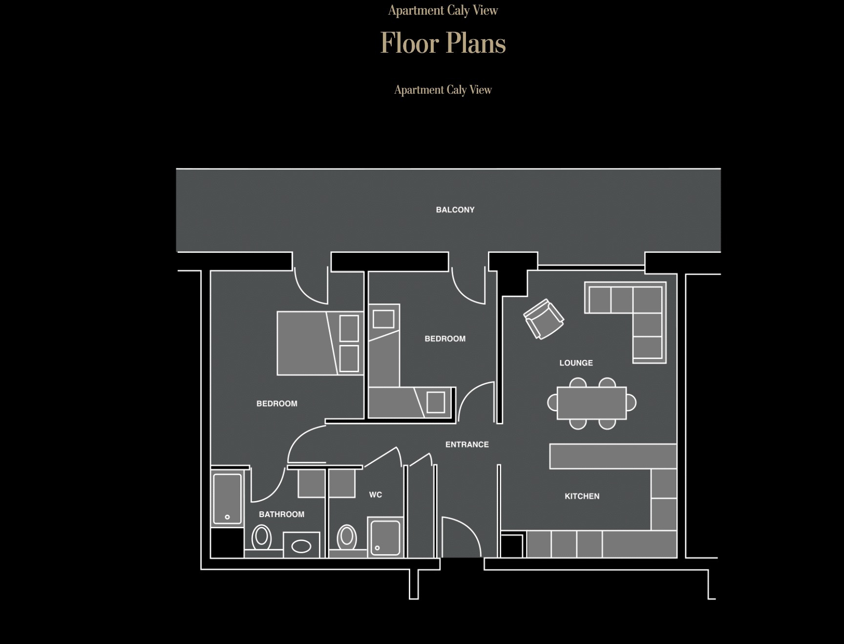 When you enter the apartment building, you can catch the lift up to the 2nd floor, home to Apartment Caly View and Apartment Aviemore next door. If you are two families or groups travelling together, they can sleep 16 people when combined. Step inside Apartment Caly View and there is a small hallway leading off to the open-plan kitchen and lounge. A table with bar stools can be pulled out into the room when you are having meals, or tucked back in to provide maximum living space. The lounge has a TV, sofa and doors leading onto a balcony, which has an outdoor dining table and chairs. This is the perfect spot to catch the last of the afternoon sunlight with a glass of wine.